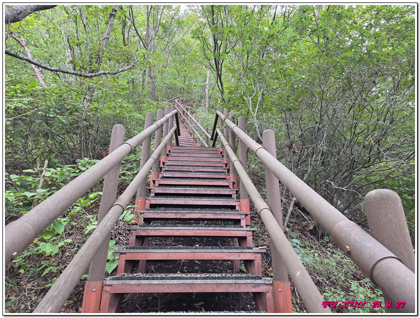 오늘 산행에서 가장 가파른 경사의 계단길